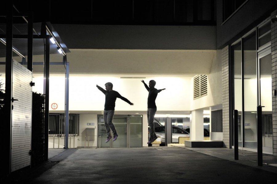 The performers decide to use calculated internal relations, randomness as well as mutual looks, motions and states in order to arrive a point where a constant interchange between the formal/public and the informal/private person takes place through constant navigation in the bare performative space.