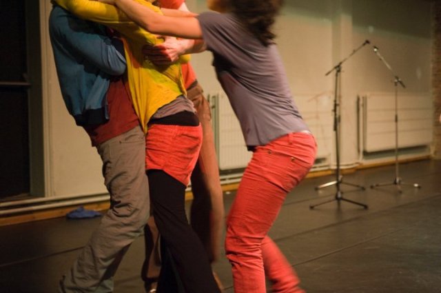 At twelve stations, arranged in series and each consisting of an acoustic panel and an automaton piano, twelve dancers perform in a feedback situation of movement and self-generating sounds. The result is indirect music: the steps on the acoustic panel are translated by a computer and transferred to the keys of the automaton piano, then played back and reinterpreted with human possibilities. In the repetition, the movements formed from the sound material change: new rhythms arise and challenge the dancers’ creativity and precision.