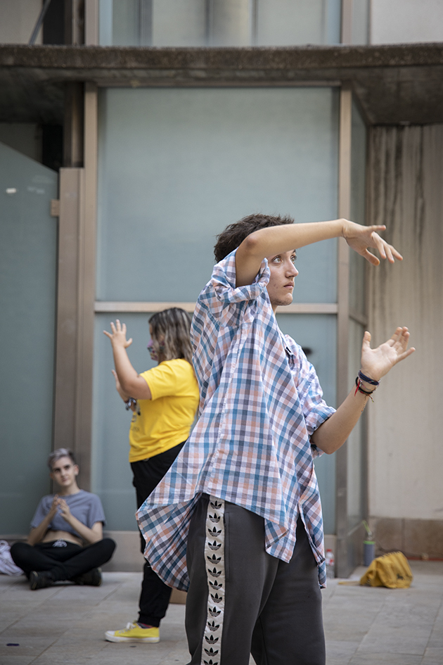 The verb to hang out has interesting subtleties to offer to the concept of gathering, of meeting up. Everybody has hung out with someone in a park or a square, just being there with them, together, without a particular purpose. Harvesting the experience of past projects such as Festucs or Carne Fiesta, choreographer Quim Bigas will follow the thread of each session to provide a similar creative space, a place before the judgement, before the description, even before the definition of identity.