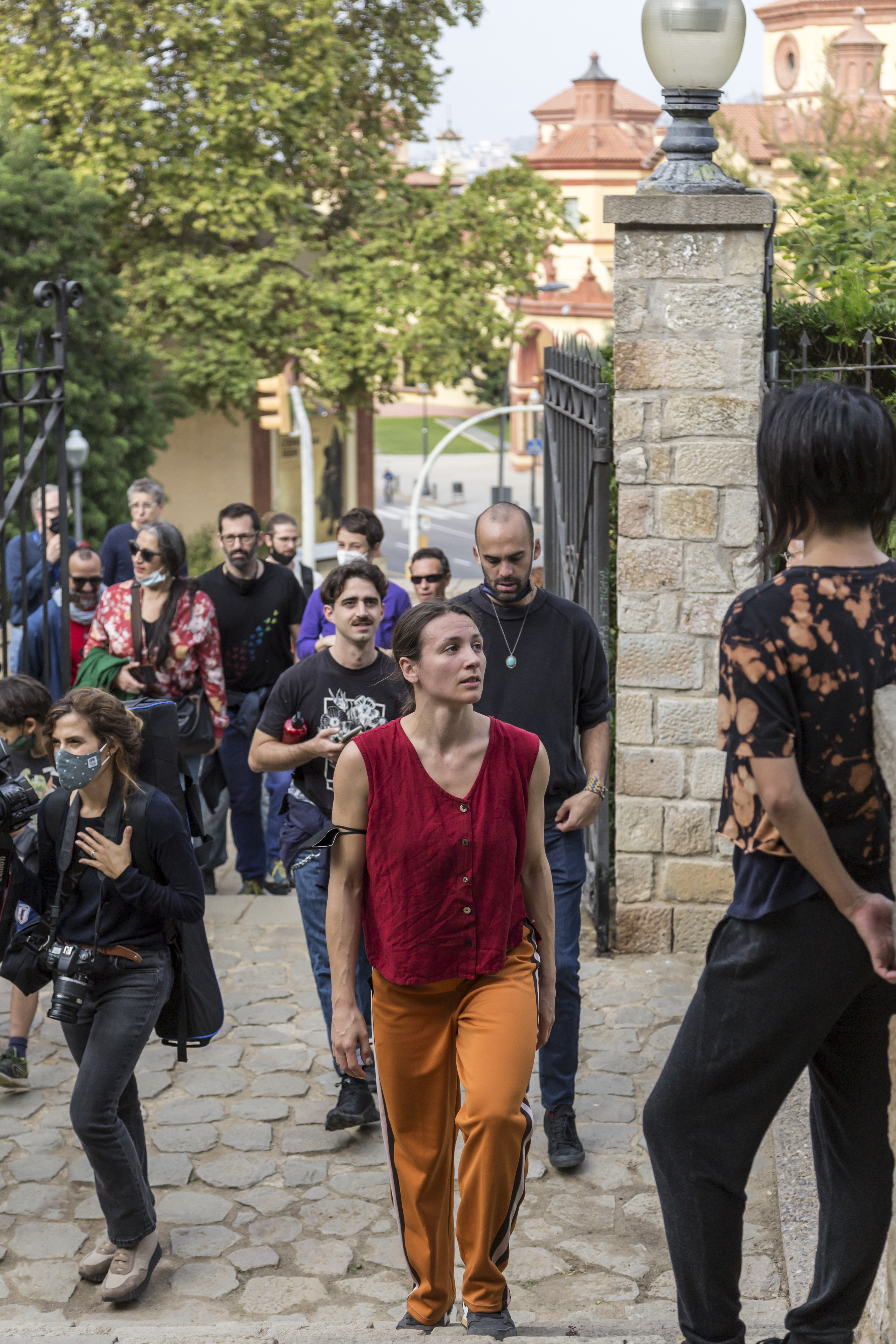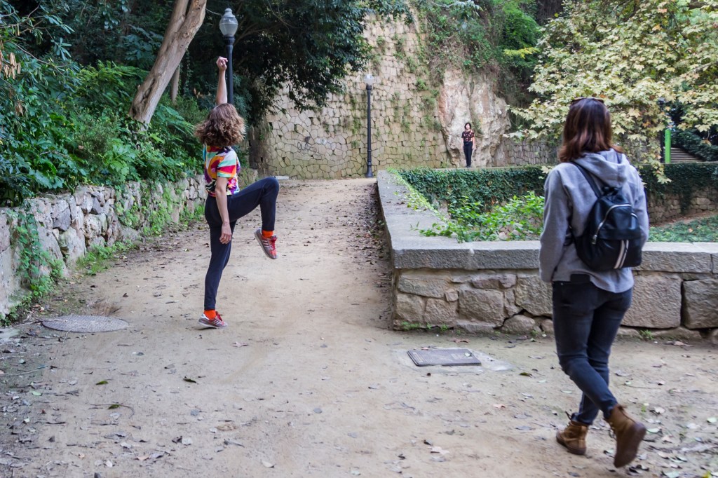 Las artistas establecerán una conexión orgánica entre el Mercat de les Flors y la Fundación Joan Miró, con el trasfondo del paisaje que las rodea y al mismo tiempo las separa. Habrá acciones dentro y fuera de las dos instituciones y también en diferentes puntos de un extenso espacio intermedio. La actividad global contempla un proceso bidireccional, de un equipamiento cultural al otro, y viceversa. Esta reciprocidad es representativa de un diálogo sostenido entre ambas instituciones en el curso del proyecto “Dancing Museums”, pero también de la fluidez de los procesos, con un inicio y un final a menudo imprecisos, como las líneas de Joan Miró que recorren el espacio o las obras.